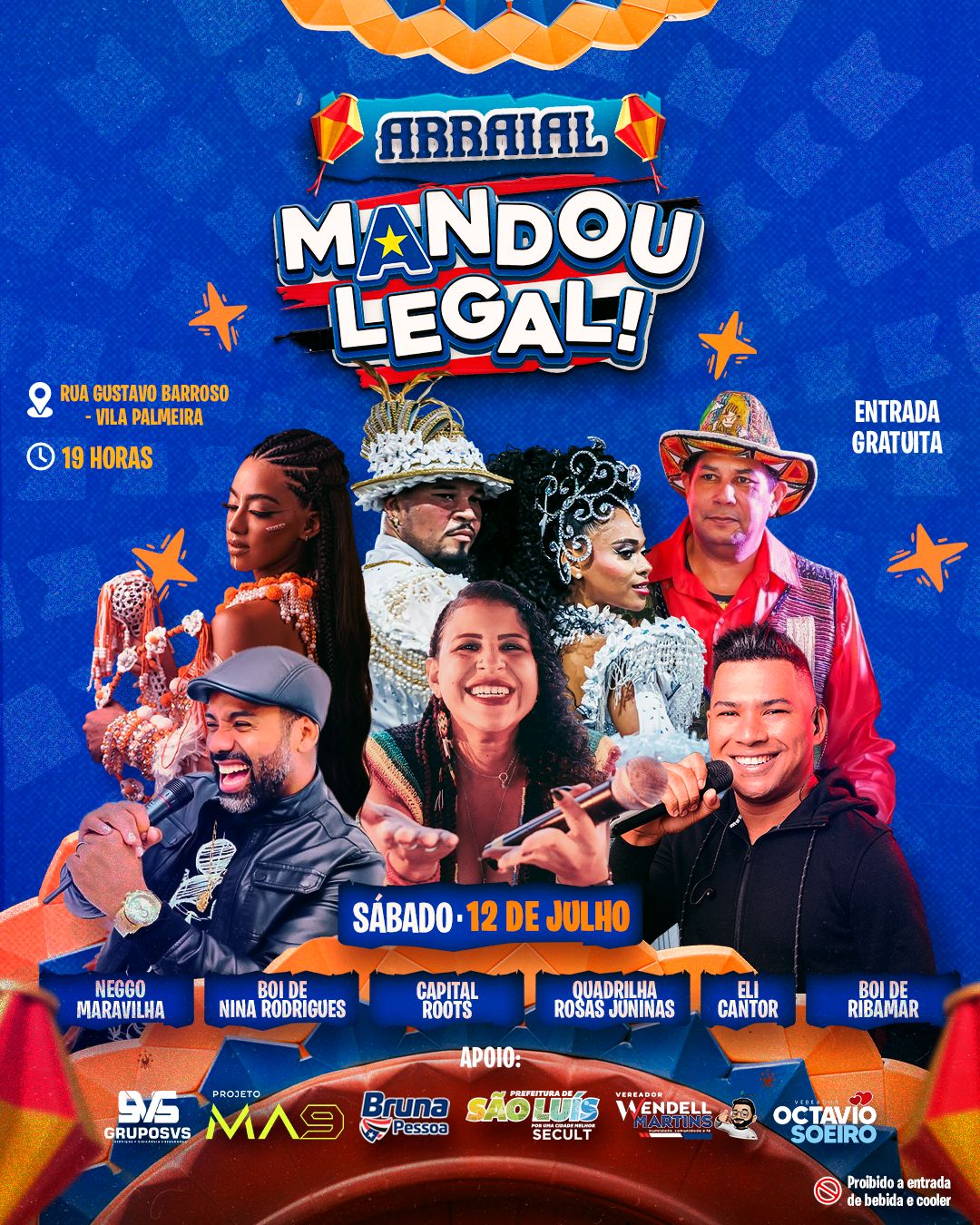 O tradicional Arraial Mandou Legal promete animar a comunidade neste sábado, 12 de julho de 2025, a partir das 19 horas, na rua Gustavo Barroso.