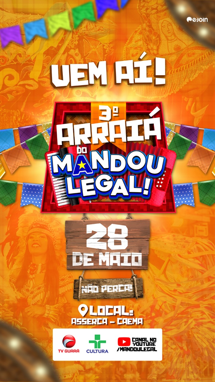 A PRODUTORA MANDOU LEGAL PRODUÇÕES & EVENTOS Criado pelo produtor cultural e apresentador OSVALDO SOUZA, o Programa Mandou Legal é pioneiro em São Luís na realização de arraial na forma de live , obtendo grande sucesso em sua empreitada, razão por que estamos mais uma vez organizando para fazer o 3° ARRAIAL MANDOU LEGAL será realizado das 19hs do dia 28 de maio às 06 da manhã do dia 29, modo presencial Associação da CAEMA – ASSERCA e transmitido por nosso canal YOUTUBE-Mandou Legal e por vários outros canais em link simultâneo, sendo posteriormente reprisado e transmitido pela TV Guará Canal 23 Afiliada TV CULTURA, no próprio Programa Mandou Legal, todo sábado às 8:30 horas, com vasta divulgação espontânea e plano de mídia, sendo coordenado por equipe que tem a liderança dos produtores culturais Peterson Bruno e Robério Lima.