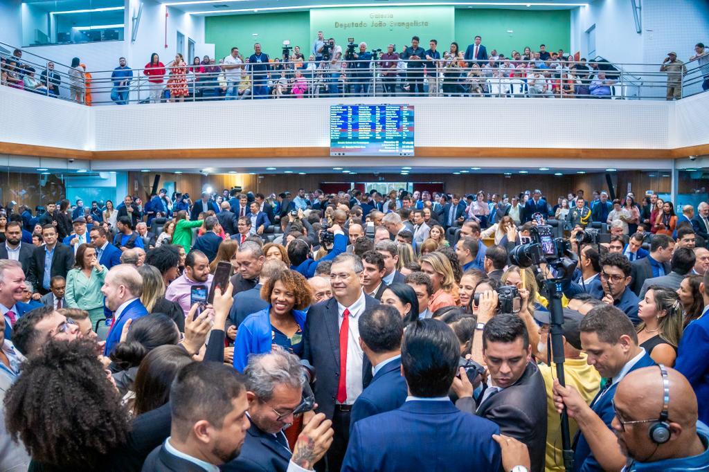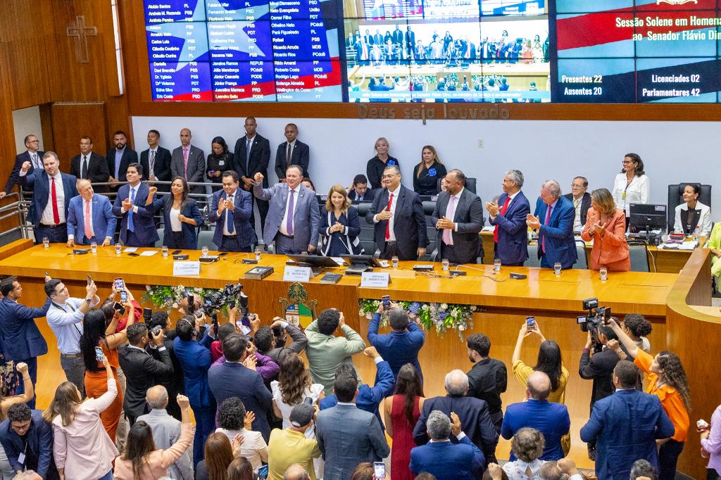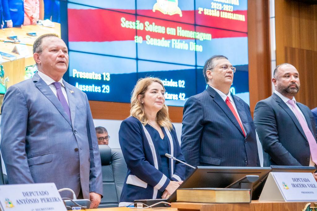 A sessão solene em homenagem a Flávio Dino contou com a presença do governador Brandão e foi conduzida pela presidente Iracema Vale