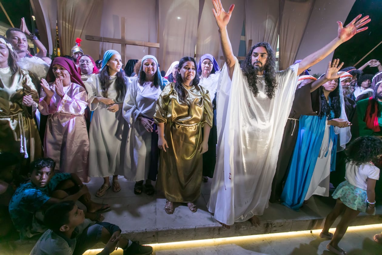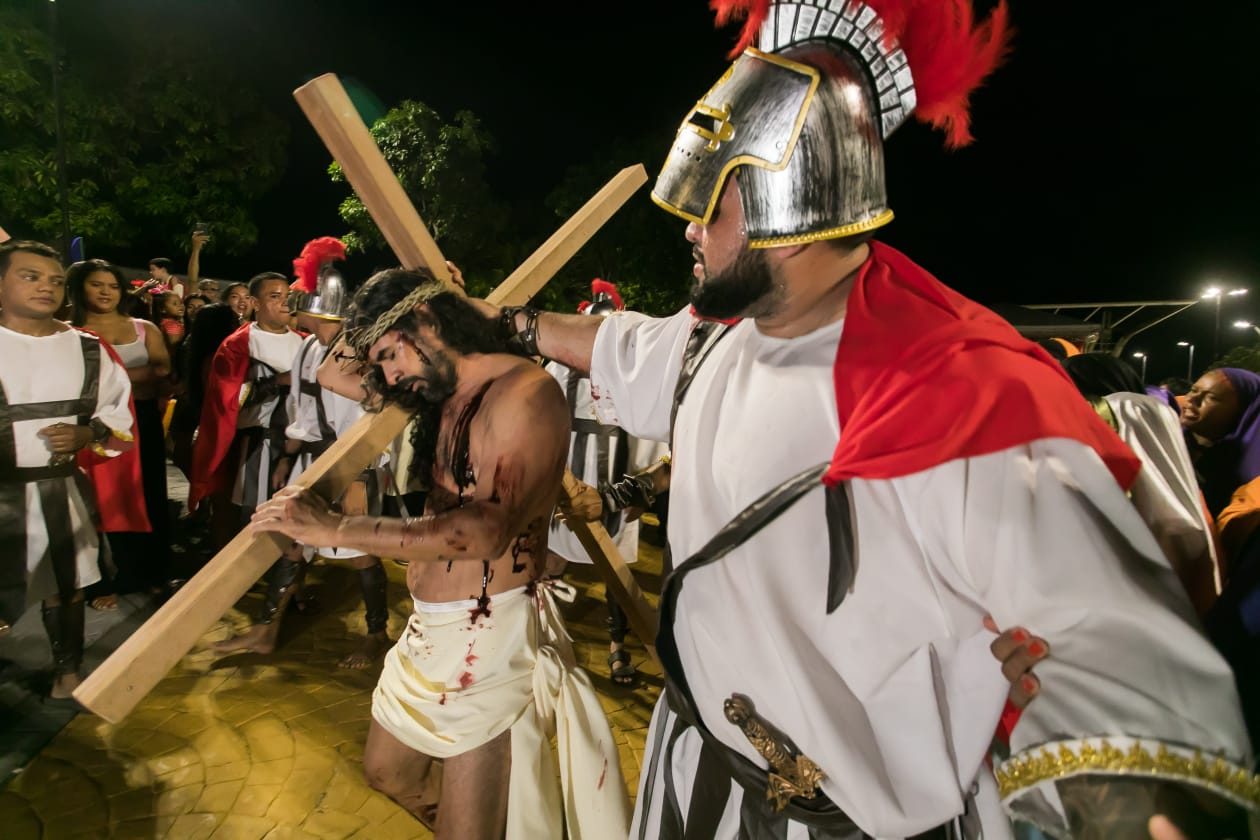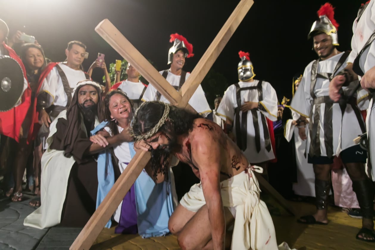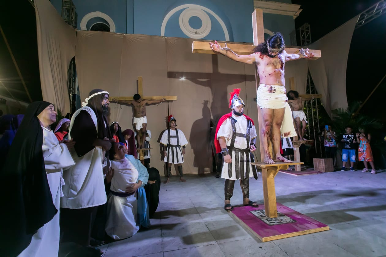 A encenação aconteceu na Sexta-Feira Santa (15) e uma reapresentação no Sábado de Aleluia (16).