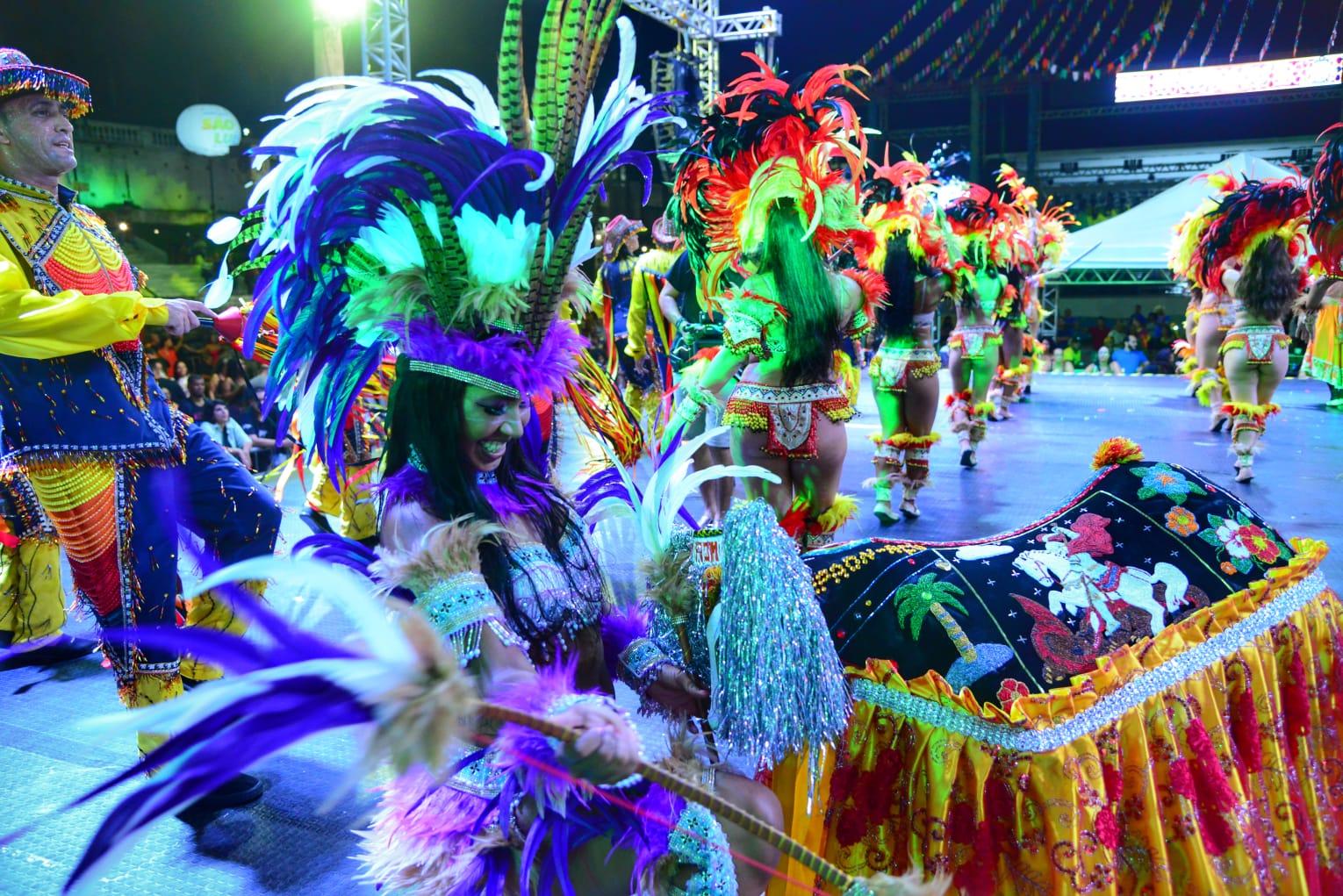 Na sequência, o tablado foi ocupado pela Quadrilha Mocinha do Sertão, grupo que soma 34 anos de tradição no São João do Maranhão e neste ano leva uma mensagem de amor, esperança e respeito aos arraiais. Depois da homenagem ao sertão nordestino, foi a vez do Cacuriá do Jhon, executado por casais no embalo da dança com pitadas de sensualidade. A noite foi encerrada com as apresentações dos bois de Upaon Açu e Maioba.