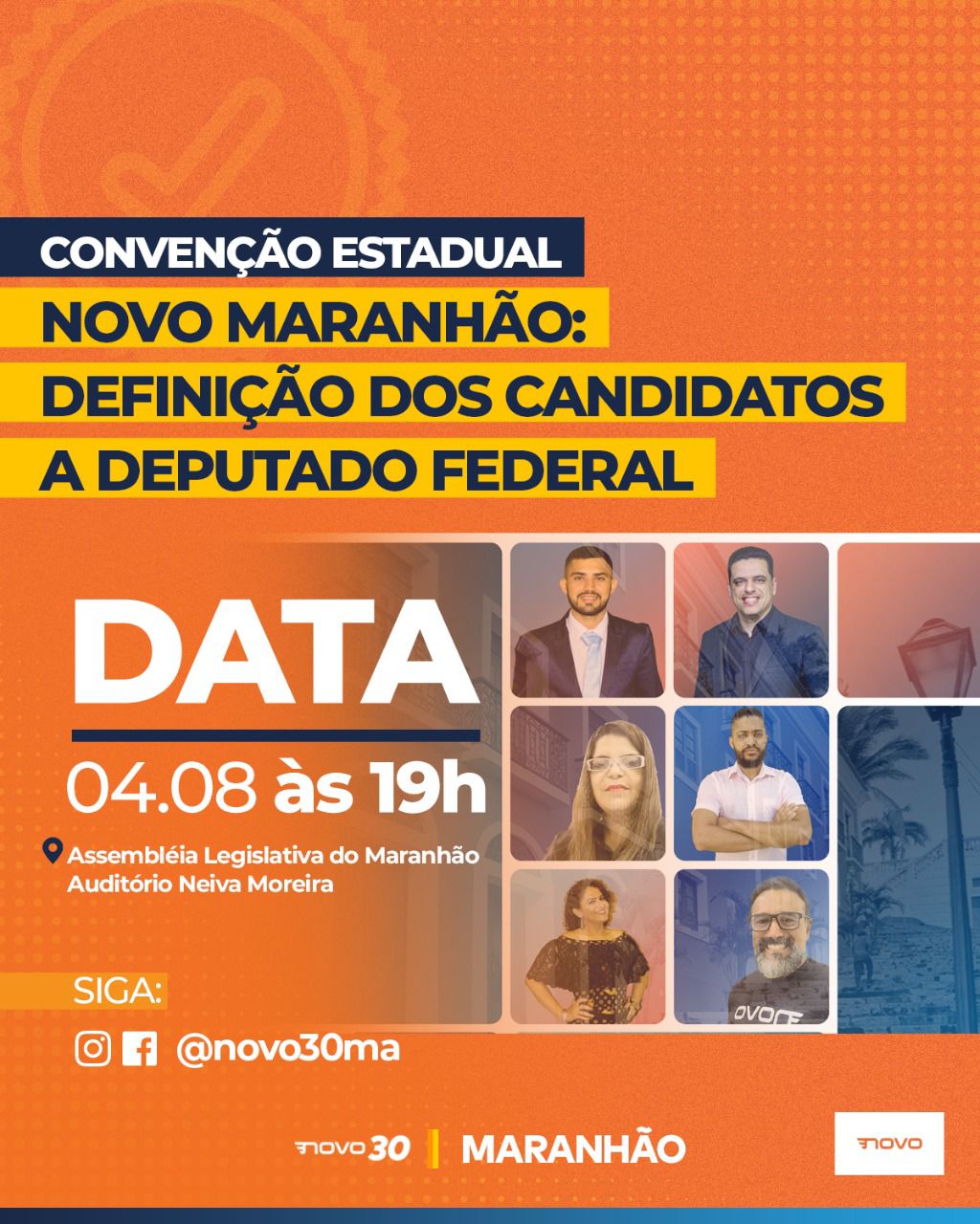 O Partido Novo realiza nesta quinta-feira (4), na Assembleia Legislativa na Avenida Jerônimo de Albuquerque em São Luís, a convenção estadual que vai definir os
