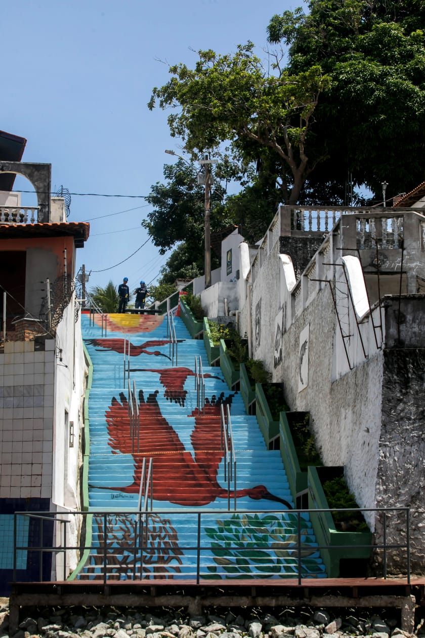 Uma das grandes novidades da escadaria é a pintura feita por artistas plásticos, dirigidos pelo renomado artista ribamarense Wendel Rocha, que retratou nos degraus da escadaria uma revoada de guarás-vermelhos, um retrato da paisagem da orla marítima do município.